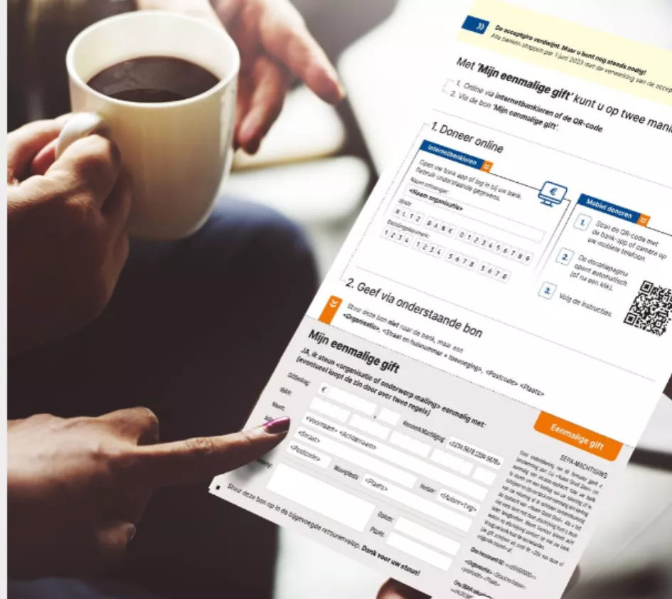 Gebruikte je de acceptgiro om de betaalinformatie over te nemen? In dat geval verandert er eigenlijk niets. Ook op Mijn eenmalige gift staat alle informatie om een gift over te kunnen maken.