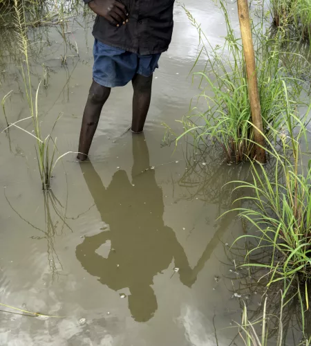 Tot overmaat van ramp overleed Regina’s man aan de gevolgen van een slangenbeet. “Slangen zoeken het door de overstromingen ook hogerop”, zegt ze. “Het overlijden van mijn man maakt het allemaal nog moeilijker voor ons. Nu sta ik er helemaal alleen voor met onze kinderen. En alles blijft maar overstromen.”