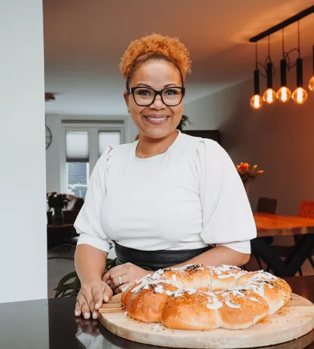 Elizabeth (41) is opgegroeid op Aruba, waar zij als kind de bak- en kookkunsten van haar moeder afkeek. “Langzaam maar zeker mocht ik steeds meer zelf doen.” Inmiddels bakt ze niet alleen voor haar familie, maar ook voor de mensen om haar heen. “Ik word er blij van als ik andere mensen kan verrassen met een lekkere taart.” Haar deelname aan Heel Holland Bakt eerder dit jaar was een droom die uitkwam. Daarbij kreeg ze volop steun van haar man en kinderen. Tot 1 december werkte ze drie dagen in de week als verpleegkundige, en ook op haar werk kreeg ze veel steun; mensen waren bereid om diensten met haar te ruilen. Inmiddels heeft Elizabeth haar eigen taartenwebwinkel met de naam Mi Dushi Cakes.