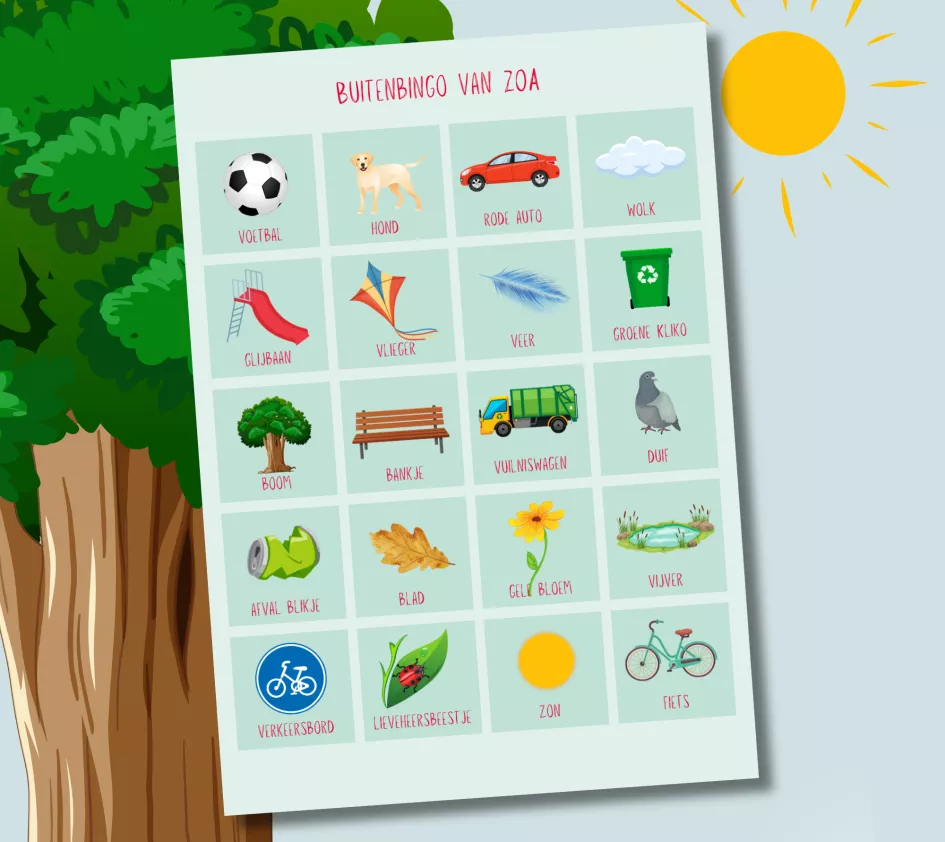 Buiten spelen is heel gezond! Om dit een beetje te stimuleren hebben we een buitenbingo gemaakt. Twintig plaatjes om te zoeken, allemaal buiten in de natuur te vinden. Print hem dus snel uit en ga aan de slag! Of maak er een leuk wedstrijdje van met je broers en zussen of buurtkinderen. Wie heeft ze als eerste allemaal verzameld? Succes!