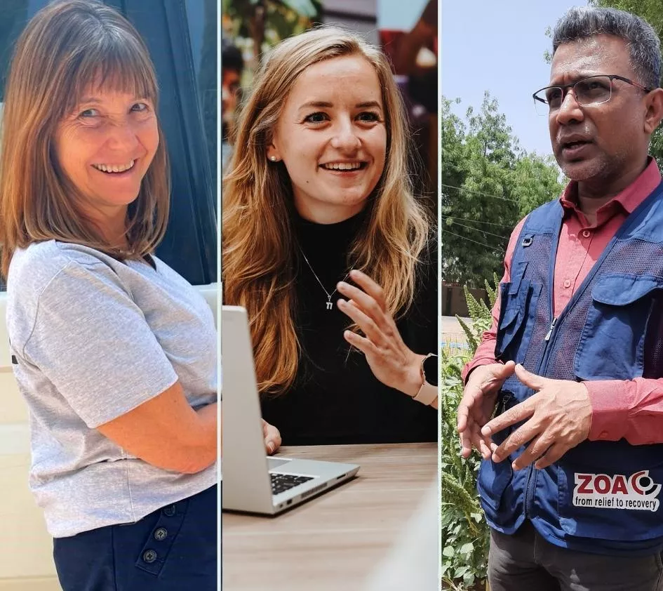 Ze verschillen in leeftijd, culturele achtergrond en nationaliteit, maar delen één grote passie: ze zetten zich in voor mensen op de vlucht. Daarom werken de Britse Dawn, de Sri Lankaan Antony en de Nederlandse Liselotte voor ZOA. “Tijdens veldbezoeken zie ik dat mensen in de meest ingewikkelde omstandigheden nog tot zoveel in staat zijn. Deze ontmoetingen en verhalen motiveren mij enorm in mijn werk.”