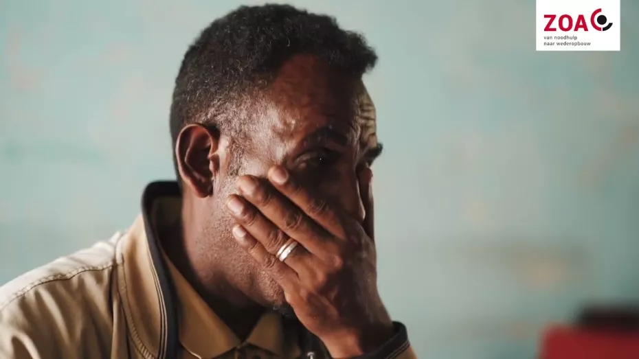 Atsbiha Gebremariam (45) maakte de oorlog in Ethiopië mee: "Door een mortierinslag stortte mijn huis in. Mijn kinderen en ik lagen bedolven onder het puin. Toen ik bij kennis kwam, zag ik dat alles om mij heen verwoest en verbrand was. Met man en macht probeerden mijn buurtgenoten en ik de kinderen onder het puin vandaan te halen. Mijn buurkinderen, die op het moment van inslag naast mij stonden, overleefden het niet. Hun verlies zal ik altijd bij me dragen." ZOA helpt Atsbiha haar huis weer op te bouwen. "Deze hulp doet mij de verschrikkingen van de oorlog vergeten, waardoor ik aan morgen kan denken. Daar ben ik ZOA eeuwig dankbaar voor."