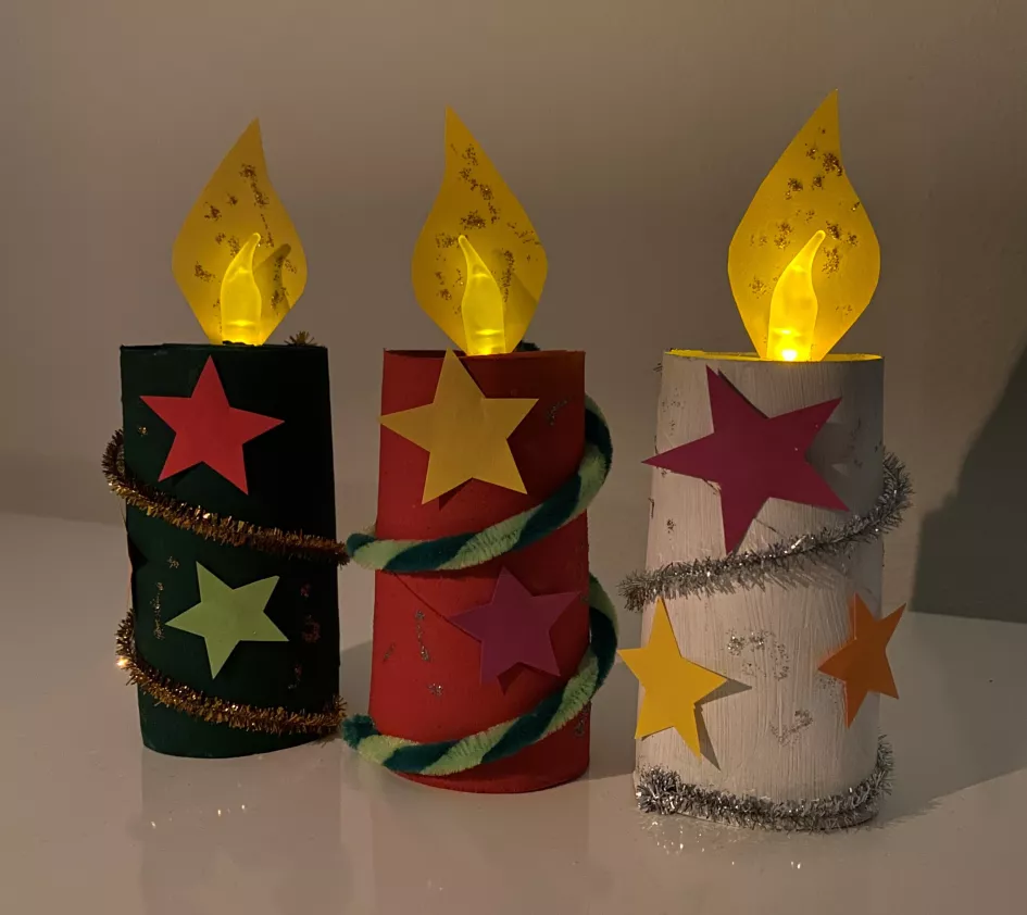 Met simpele materialen kun je in een handomdraai gezellige kerstdecoratie maken. Deze DIY is ideaal voor een knutselmiddag met het gezin of om je huis in kerstsfeer te brengen. Gebruik wc-rolletjes als houders voor waxinelichtjes en maak er drie sfeervolle kerstkaarsen van.