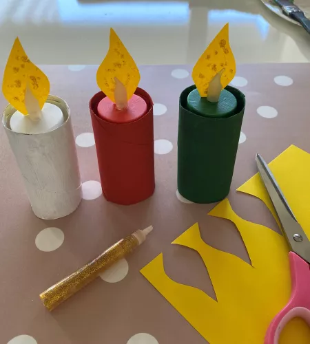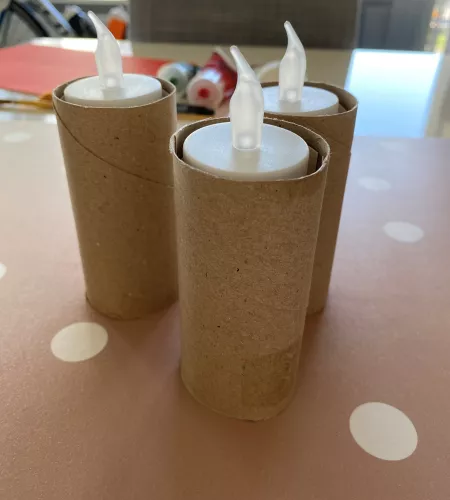 Maak kerstkaarsen van wc-rolletjes