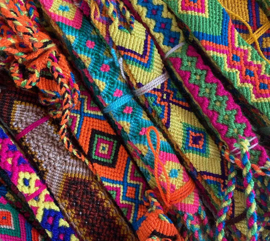 Deze kleurrijke armband is handmatig geweven door bekwame handen en vertelt een verhaal van veerkracht, hoop en trots. Dit kleine meesterwerk weerspiegelt de Wayuu-cultuur van de (migranten)bevolking in La Guajira, Colombia.