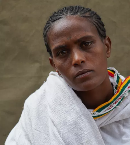 In een klein vluchtelingenkamp in Amhara wijst Melishew naar haar jurk vol gaten. “We kwamen met lege handen aan, we moesten alles achterlaten.” Deze tengere vrouw uit Tigray heeft een verdrietige blik in haar ogen en huilt veel. Ze is ernstig getraumatiseerd. Toch wil ze graag haar verhaal vertellen.