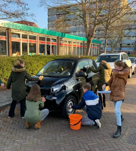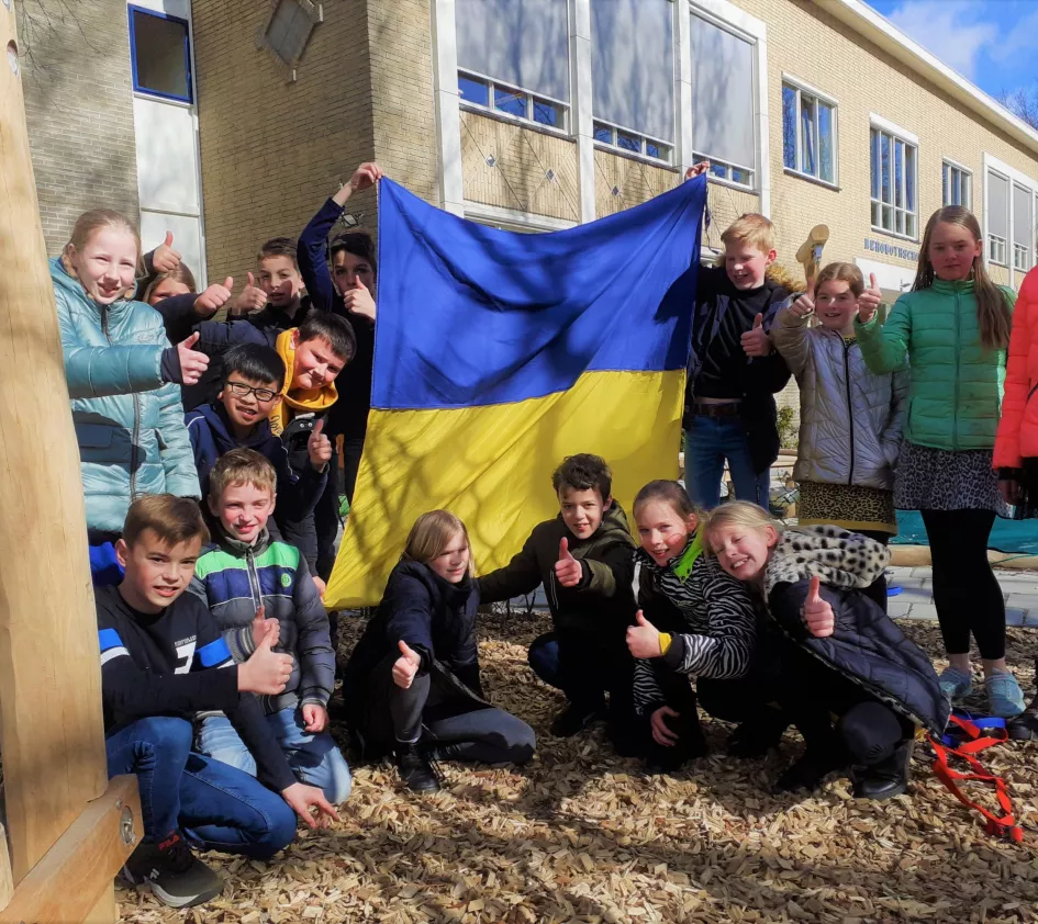 Ook basisschool De Bron uit Leiderdorp kwam in actie voor Oekraïne. Leerlingen van groep 7/8 bedachten allerlei creatieve manieren om geld op te halen. Auto’s wassen, statiegeld ophalen, in de tuin werken, een kahootquiz... Leerlingen Lilian en Alexander vertellen: "We hoorden heel veel op het nieuws over de oorlog in Oekraïne. En we beseften hoe goed wij het hebben vergeleken met hen. Daarom zijn we deze actie gestart. Met de hele klas!" Samen haalden de leerlingen € 1.723 op. Geweldig!