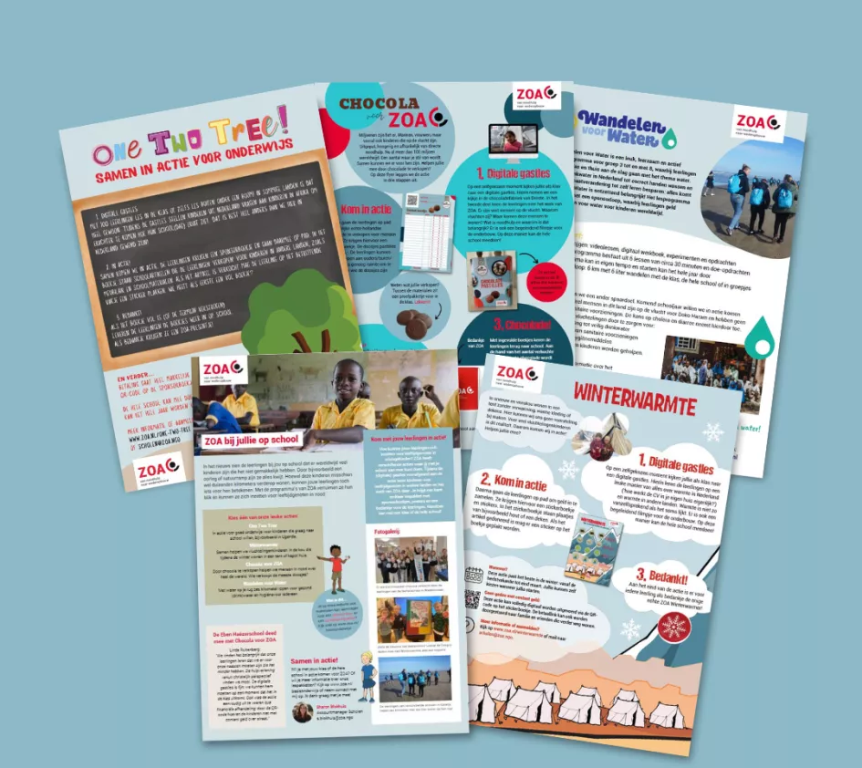 ZOA heeft super leuke kant-en-klaar actiepakketten voor basisscholen. Met verschillende thema's zit er altijd wat voor jullie bij. Vraag hieronder het informatiepakketje aan en ontvang digitaal alle informatie die jullie nodig hebben.