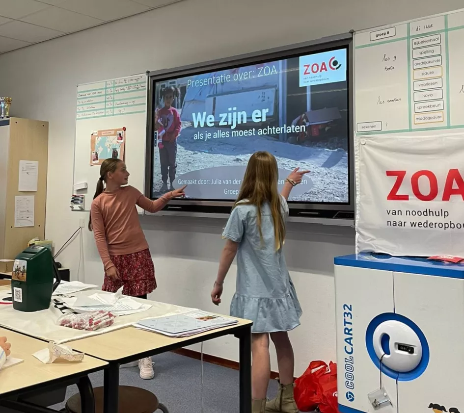 • Een informatievel over ZOA bij jullie op school