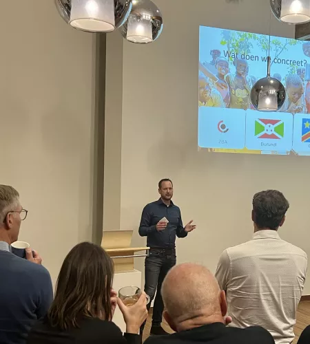 Jos Koppelaar, ZOA Business Ambassador en eigenaar van CareConnections, nam de aanwezigen mee in zijn verhaal hoe hij als ondernemer betrokken is geraakt bij ZOA. Jos vertelde een inspirerend verhaal over zijn reis naar Burundi en zijn drang om vanuit christelijke idealen niet zijn eigen belangen te dienen, maar zich te richten op die van een ander.
